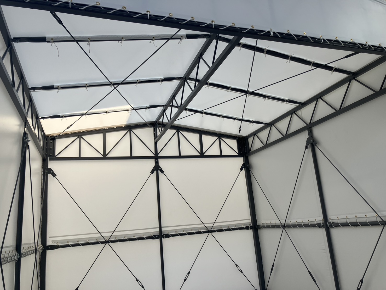倉庫横の空きスペースにキャスターテントを新たに設置しました。テントシートには軽量で扱いやすく、防炎・防水に優れたシートを使用しており、車輪付きで移動が可能なため、荷物の一時的な仮置き場所としてはもちろん、作業スペースとしても柔軟に活用できます。天候や作業内容に応じて位置を変えることができ、アンカーで固定して使用もできるため現場の状況に合わせて対応が可能になります。