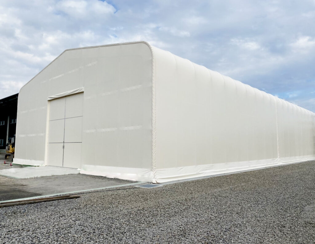 テント倉庫の快適性と機能性を高めるために、LED照明の設置で明るい作業環境を確保し、ベンチレーターや壁面換気扇で温湿度管理を強化します。出入口にはシートシャッターやアルミドアを採用でき、窓や引き戸の追加も可能です。さらに、庇の設置やはかま抑えの施工により、雨風への対策も万全です。これらのオプションは、用途や環境に応じて柔軟に組み合わせられます。
