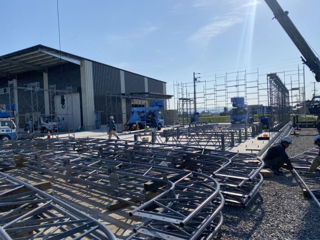 今回は、鉄骨およびシートの製作が完了した段階から始まる「施工工程」について、詳しくご紹介いたします!